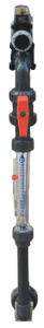 Linhas de injeção em PVC compostas por medidores flutuantes de 1000 l/h, válvulas solenóides de 9 mm, válvula manual e de retenção e sistema Venturi.